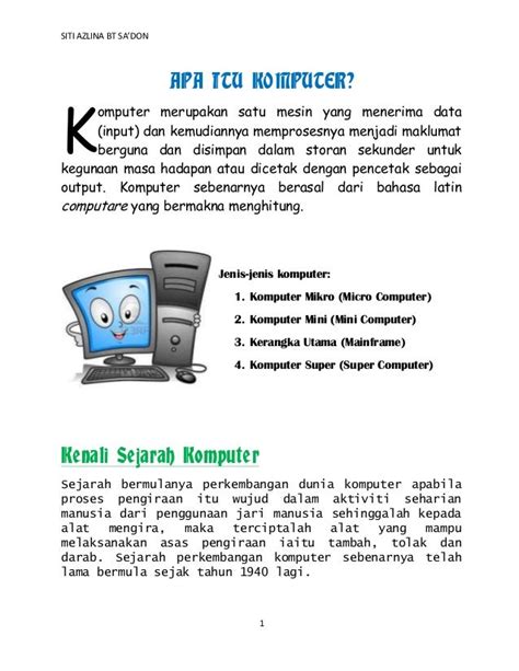 Komputer sudah menjadi bagian tak terpisahkan dari hidup kita. Dari mengirim email sampai memesan makanan, dari belajar sampai bekerja, komputer membantu kita melakukan banyak hal dengan lebih cepat dan efisien. Memahami dasar-dasar komputer akan membantu kita memanfaatkan teknologi ini secara maksimal.